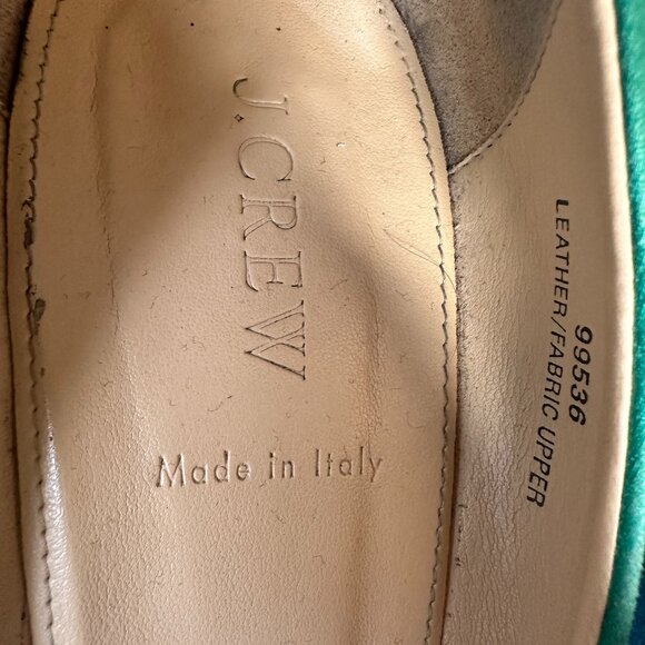 These J.Crew chunky heels are a gorgeous combination of vibrant green satin and classic black leather, offering a sophisticated look with a playful edge. Don’t miss your chance to own this versatile and stylish pair!