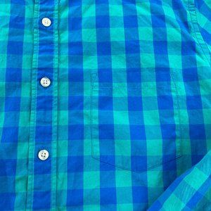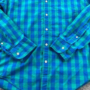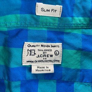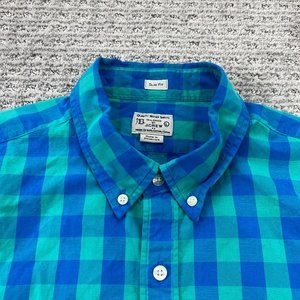 J.Crew Shirt Men Large L Green Blue Checkered Button Down Long Sleeve Slim Fit
