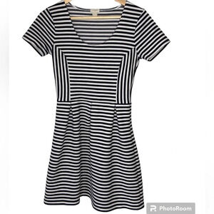 J.Crew Size 2 white Black Stripe Dress Women empire waist flattering pleats mini