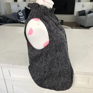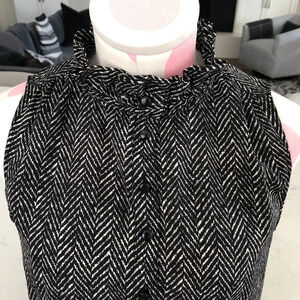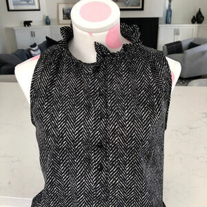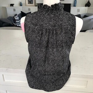 J.Crew Sleeveless Ruffle Collar Pull-On Blouse Herringbone Print Blk Wht Sz M