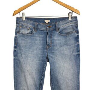 jcrew skinny jeans, women’s size 28 denim, stretch slim jeans, faded blue jeans, jcrew classic style, everyday stretch denim, slim fit mid rise, cotton blend jeans, casual skinny jeans, 28 30 stretch jeans, light wash jcrew pants, soft fit skinny jeans, versatile denim look