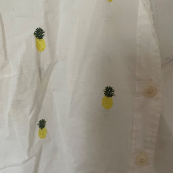 White j.crew button up with small embroidered pineapple pattern. Some discolouration on inside of collar but would not be visible when wearing. Size Small.