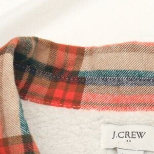 J.Crew Women Shacket Plaid Sherpa lining Cream Red Evergreen Flannel Sz S