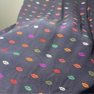 J.Crew Women’s Navy Silk Ruffle Blouse Lips kisses Print preppy Long Sleeve US 6
