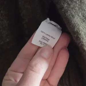 Stay stylish and warm with this elegant olive green 100% lambs wool sweater. Perfect for any occasion