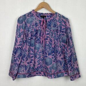 Tags: J.Crew Abigail Borg Silk Floral Peasant Blouse Pink Navy Small