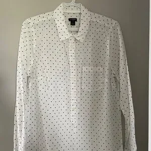JCrew navy polka dot, button down blouse