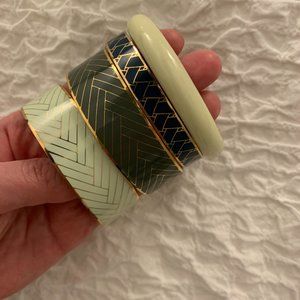 Stack of 4 J.Crew enamel bangle bracelets in various shades of green. In good condition, some scratches on insides but not visible when worn.