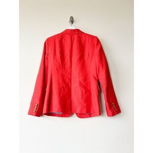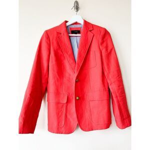 This brand new J.CREW Parke blazer features a bold Brilliant Sunset red hue in a crisp linen blend with clean tailoring and a lightweight feel