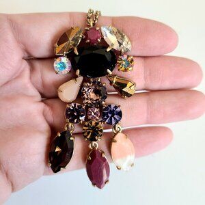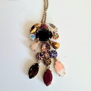 J.Crew multicolored jewels dangling pendant on gold tone chain.