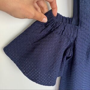 J. Crew Basketwave Textured Navy Cold Shoulder Dress