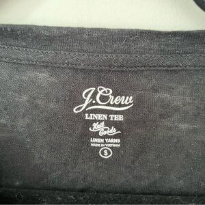 J.Crew, black linen t-shirt, short sleeve tee, crewneck top, knit goods collection, breathable fabric, lightweight linen, relaxed fit, casual essential, minimalist style, elevated basic, summer staple, soft linen blend, classic black tee, wardrobe essential, everyday wear, capsule wardrobe, timeless piece, clean girl aesthetic, comfy chic, Poshmark style, Depop fashion, neutral top, effortless outfit.