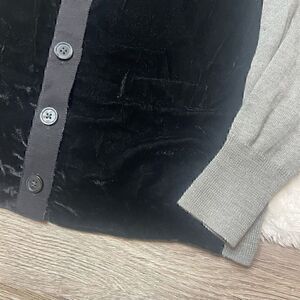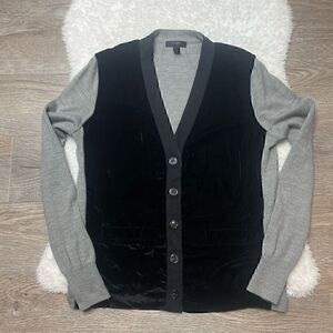 J Crew Cardigan Sweater Velvet Black Grey Size Small Button Vneck