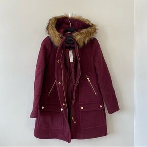 J.Crew-Stadium Cloth by Nello Gori Cranberry Wool Blend Fur Trim Full Zip