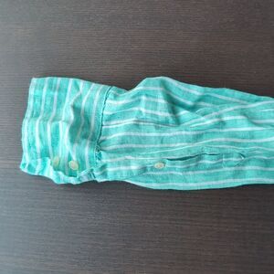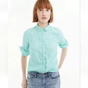 Stylish J.Crew top made from Baird McNutt Irish linen. Features a refreshing green and white stripe pattern.