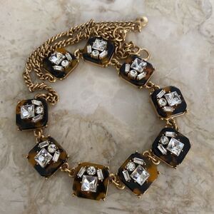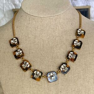 In excellent preowned condition gorgeous J. Crew necklace. It is 18" with a 3" extender chain for adjustable length. Gold tone with tortoise shell resin and crystals.
