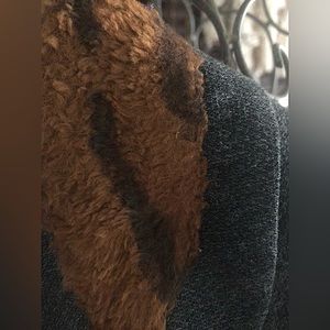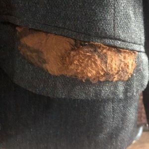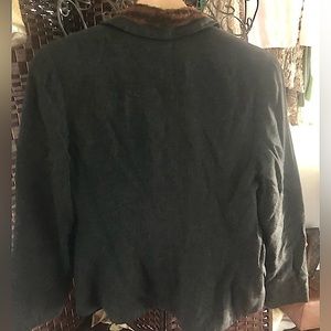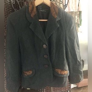 A beautiful wool-like blazer with fur-like (could be real, as designer is high-end) collar & pocket trim
