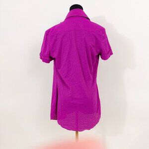 JEAN PAUL GAULTIER JPG MAGENTA PINK PURPLE BUTTON UP COLLARED SHIRT WITH RUFFLES
