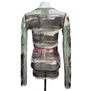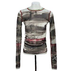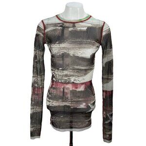 JEAN PAUL GAULTIER Vintage Long Sleeve Mesh Top Sz Large Berlin Wall City Scape