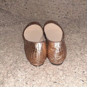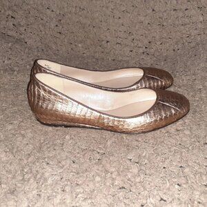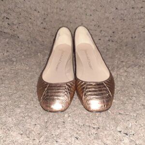Add a touch of glamour to your outfit with these beautiful Rose Gold Snakeskin Leather Flats by Jean-Michel Cazabat.