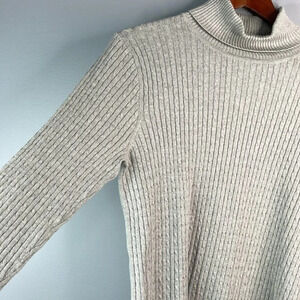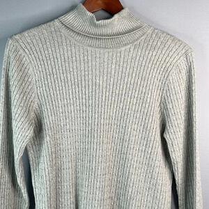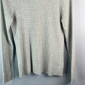 JEANNE PIERRE Cable Knit Turtleneck Sweater Grey Long Sl Lightweight Preppy M