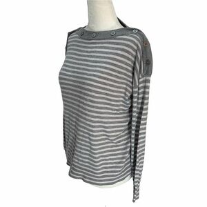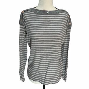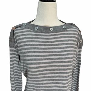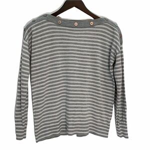 JEANNE Pierre Grey Cashmere Infused Striped Sweater S Oat Neck