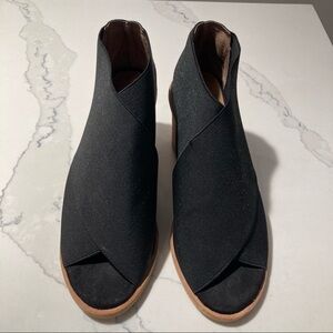 JEFFREY CAMPBELL Sz 8.5 Ibiza Cross Wrap Top Cap Peep Toe Stacked Rounded Heel