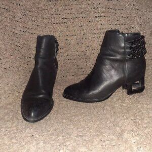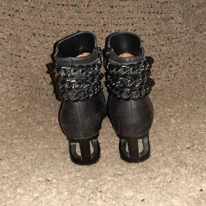 JEFFREY CAMPBELL-Benicio Bootie-Black Leather-Chains/Cube Heel-Sz 8-Excellent