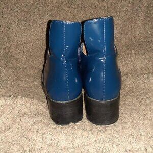 JEFFREY CAMPBELL-Westerly Booties-Blue Brushed Patent Leather-Sz 7-Excellent