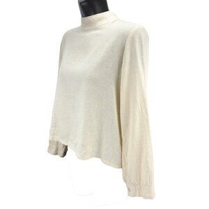 JENNIFER GLASGOW Mock Neck Long Sleeve Back Cutouts Cotton Flax Cream Blouse M