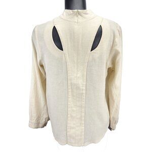 JENNIFER GLASGOW Mock Neck Long Sleeve Back Cutouts Linen Blend Cream Blouse M
