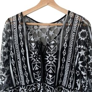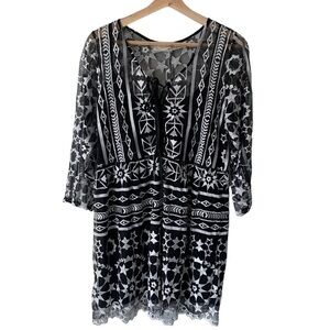 JEN'S Pirate Booty Fortune Mini Dress Black White Lace Sheer Embroidered Size M