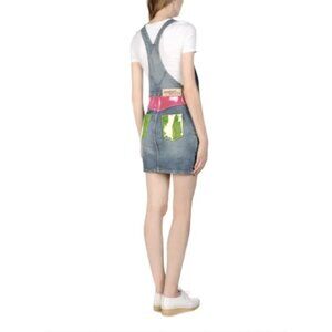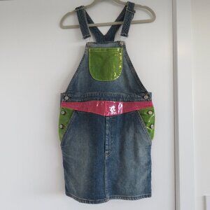 JEREMY SCOTT X MOSCHINO Neon Applique Denim Overall Dress - Women's Size US 6