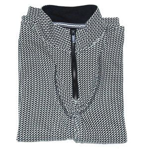 Gorgeous Gray/White/Black mesh pattern, long sleeve men's polo shirt, by Jermyn & Bond.