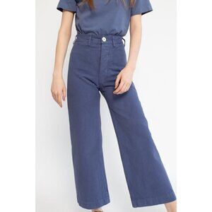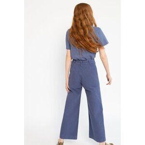 JESSE KAMM Mechanic's Blue Cotton Canvas High Rise Wide Leg Sailor Pants, Size 0