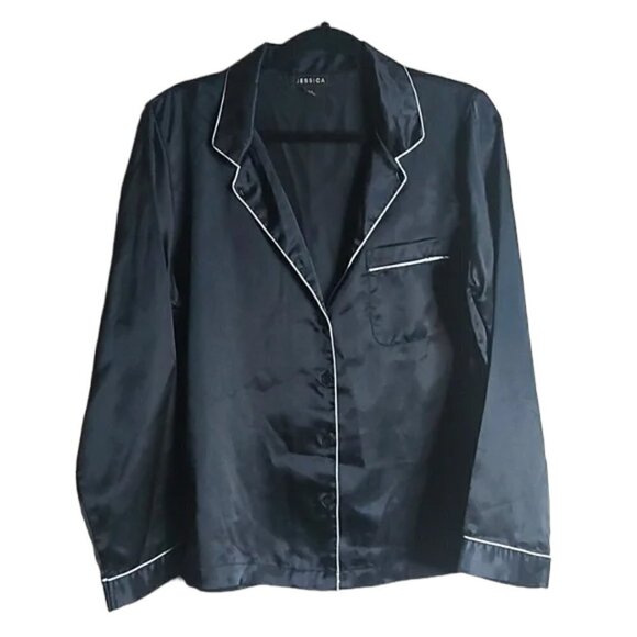JESSICA Black & White Cobtrast Piping Satin Top Size M