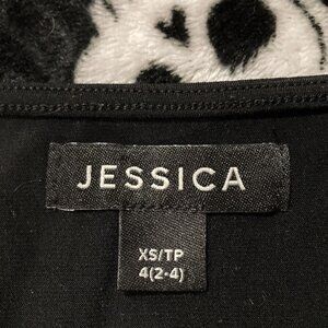 Hailing from the (Sears) brand Jessica and dating to c. 1990s - 2000s, this well-made top is lightweight, very stretchy, and comprised of 95% polyester + 5% spandex.