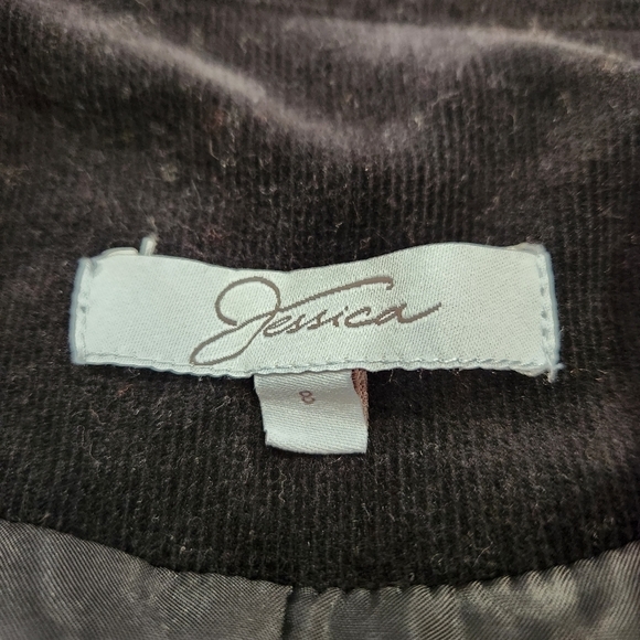 This women's size 8 jacket features a mock collar, lined interior, and genuine black corduroy for a look that is sure to make a statement.