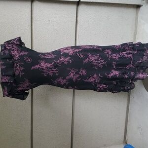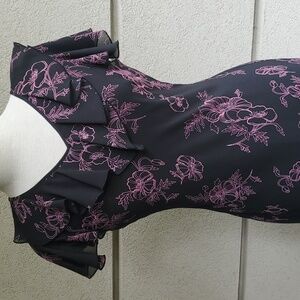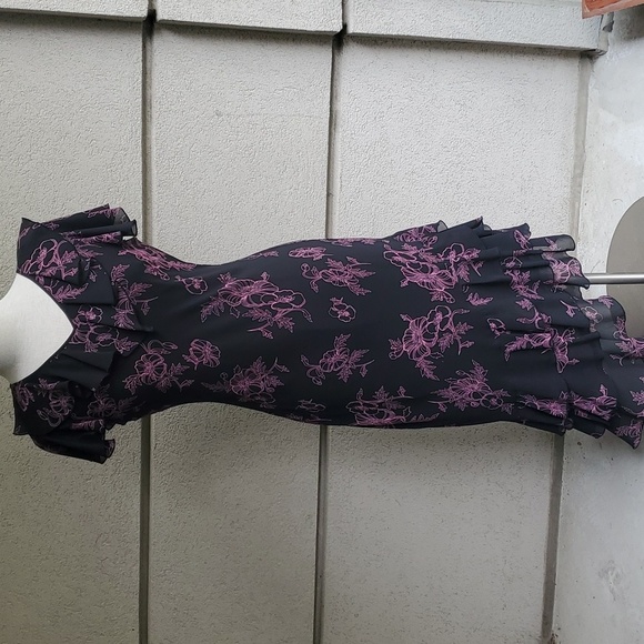 Vintage Jessica dress. Black with pink ruffled layered design at the neck line and the bottom. Beautiful dress! Excellent quality and condition!