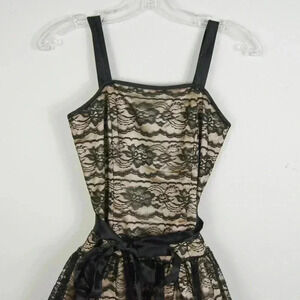 JESSICA MCCLINTOCK GUNNE SAX Dress Vintage 90s Black Lace Overlay Mini