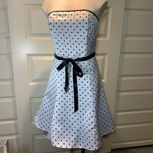 JESSICA McClintock Vintage Pinups Retro Dress Silky White Tulle Polka-dot Black