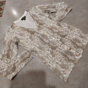 JESSICA Petite Women's Cream/Taupe Snakeskin Print Button Down L/S Cardigan XS