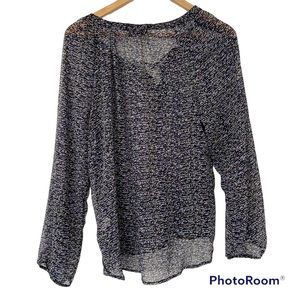 JESSICA SIMPSON MULTI COLOURED SHEER TOP/BLOUSE WITH LACE UP FRONT, SIZE LARGE