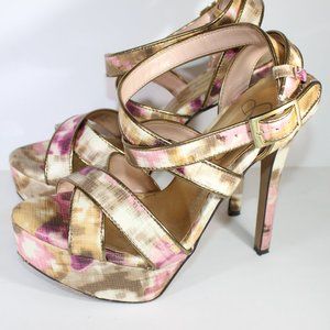 JESSICA SIMPSON Strappy Watercolour Floral Heel 6