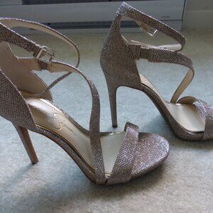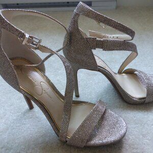 JESSICA SIMPSON gold glitter sparkle strappy heels - NWOT!