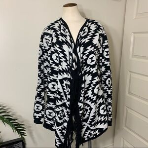 JESSICA Southwestern Black White printed Tribal Jersey Knit Cardigan Wrap L