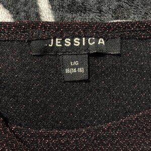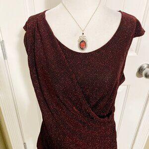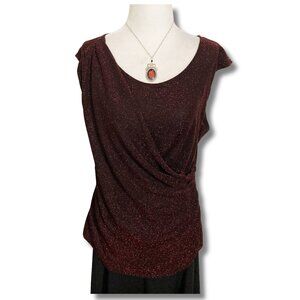 JESSICA Sparkly metallic dark red black short-sleeve draped top ~ LARGE XL shirt