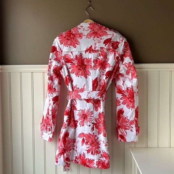JESSICA White and Red Floral Double Breasted Trench Coat Size Small
