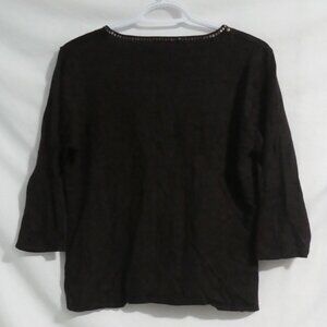 Lightweight knit sweater with bead, sea shell, and sequin design on the front of the shirt
