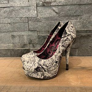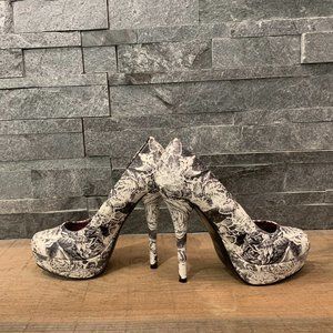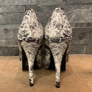 Gorgeous JF black and white floral print platform heels size 8. So pretty and such a statement shoe. In excellent used condition, smoke free home.
